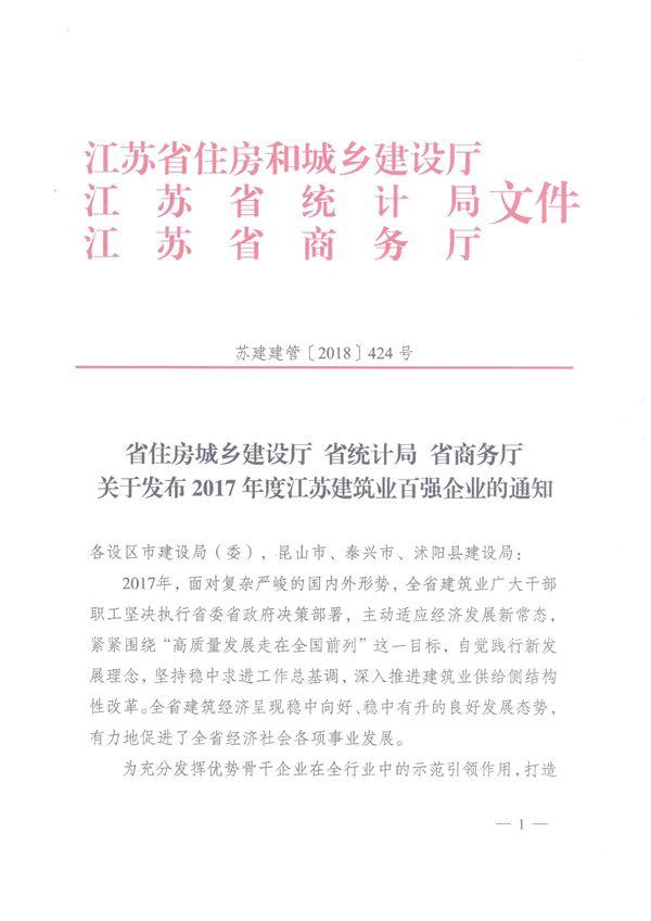 近日,江蘇省住房城鄉(xiāng)建設(shè)廳、江蘇省統(tǒng)計局、江蘇省商務(wù)廳聯(lián)合發(fā)布2017年度全省建筑業(yè)“百強企業(yè)”名單,江蘇南工科技集團有限公司以出色的成績榮登百強企業(yè)榜單。